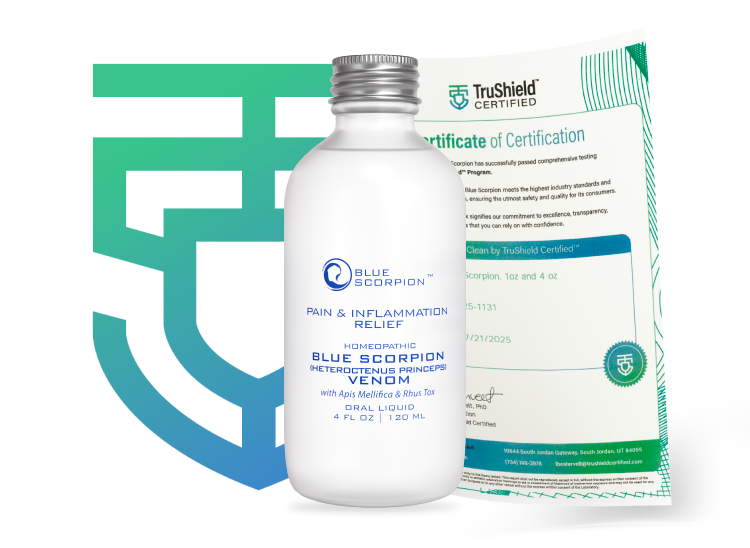 Look, no one wants to live in chronic pain. And, for those who suffer from chronic inflammation, being in pain becomes a daily drag on life. The founders of Blue Scorpion know and understand what chronic pain, fatigue, and overall unwellness feels like. That’s why over a decade of time and tens of millions of dollars were invested into formulating the world’s first all-natural, polarized anti-inflammatory homeopathic drug. Worldwide, Blue Scorpion Venom has been utilized to treat ailments and diseases from chronic inflammation and Crohn’s disease to migraines and it’s even been tested on the treatment of tumors. Medical professionals around the globe have harnessed the POWER of blue scorpion venom for decades. Now, we bring a homeopathic-approved formula to the United States.
